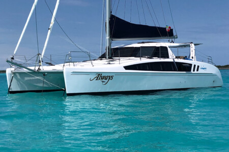 DISCOVERY Yacht Complicite is a 45′ Corbin that was built in 1991 and refit in 2022. She is currently in Fiji and is sailing west to Vanautu, Soloman’s Island, Papua New Guinea, and Indonesia this sailing season.